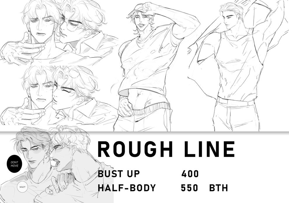 ส่งบรีฟ : ลูกค้าส่งรายละเอียดงาน (สเกล การใช้ผลงาน จำนวนตัวละคร ชุด ท่าทาง ลักษณะ สีหน้า อารมณ์เท่าที่ต้องการ ยิ่งละเอียดจะยิ่งเข้าใจไปในทิศทางเดียวกัน)รับคิว : นักวาดจะรันคิวตามบรีฟที่ส่งมา และมีการอัพเดตสถานะตามชีท Queue Check1. SKETCH : ส่งภาพร่าง โครงร่างท่าทางคอมโพส สามารถแก้ไขได้ฟรี2. LINE ART : ส่งตัดเส้น สามารถแก้ไขได้ฟรี ยกเว้นการแก้ไขที่มีการเปลี่ยนคอมโพสทั้งหมดจากที่ตกลงกันในขั้นแรกจะเก็บเงินแก้ไขตามกรณีไป3. GUIDE COLOR : ส่งสีเบส และต่อไปจะเก็บรายละเอียด4. FINAL FINISH : ส่งงานเพื่อคอนเฟิร์มครั้งสุดท้าย5. ส่งผลงานผ่าน E-mail